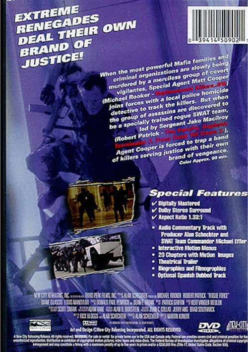 When the most powerful Mafia families and criminal organizations are slowly being murdered by a merciless group of covert vigilantes, Special Agent Matt Cooper (Michael Rooker - Replacement Killers, JFK) joins forces with a local police homicide detective to track the killers. But when the group of assassins are discovered to be a specially trained rogue SWAT team led by Sergeant Jake Macilroy (Robert Patrick - The Faculty, Copland, Terminator 2, From Dusk Till Dawn 2), Agent Cooper is f-rced to trap a band of killers serving justice with their own brand of vengeance.